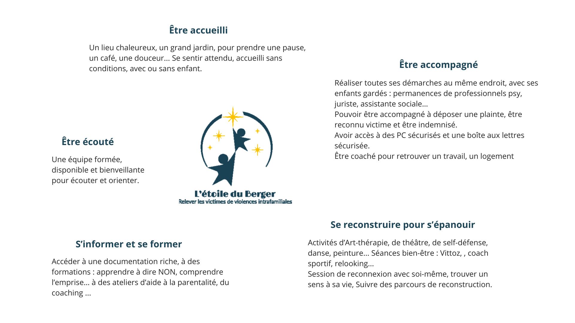 L’Etoile du Berger accueille et accompagne les victimes dans la durée, pour se reconstruire, retrouver l’estime de soi et s’épanouir.